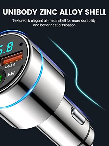 【COMPACT & METAL SHELL】With an appealingly small and sleek unibody construction, this Bluetooth car adapter sits snugly with the cigarette lighter and frees up more space on the dashboard. Made fully from heavy-duty zinc alloy, it also bears an exquisite texture to it and guarantees long-lasting use, provides better heat dissipation which won’t be melting and fire, safer than a plastic one!